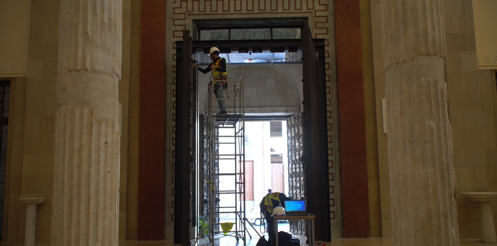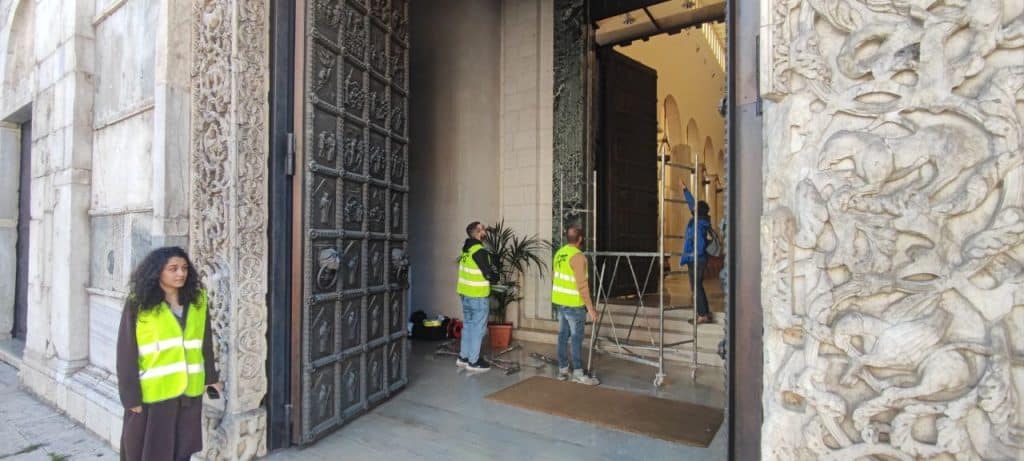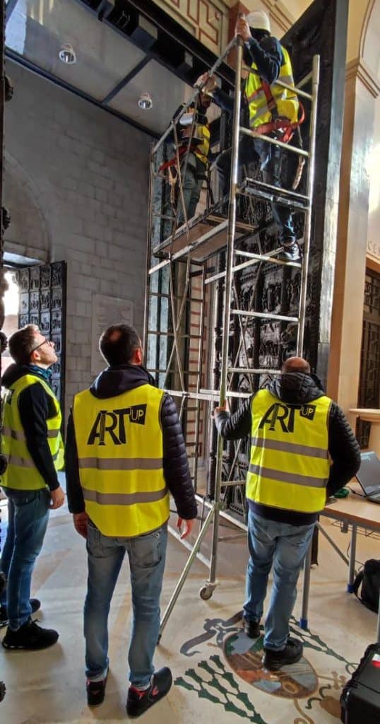 Il progetto di valorizzazione è nato con l’obiettivo di restituire centralità a quest’opera, non solo dal punto di vista storico e spirituale, ma anche attraverso nuove forme di comunicazione e inclusività. La prima fase ha previsto una sfida tecnica importante: la scansione 3D integrale dell’intera porta, un’operazione complessa, condotta sul campo in cinque giornate consecutive. Per poter raggiungere ogni dettaglio delle 72 formelle, è stato necessario allestire un ponteggio appositamente progettato.