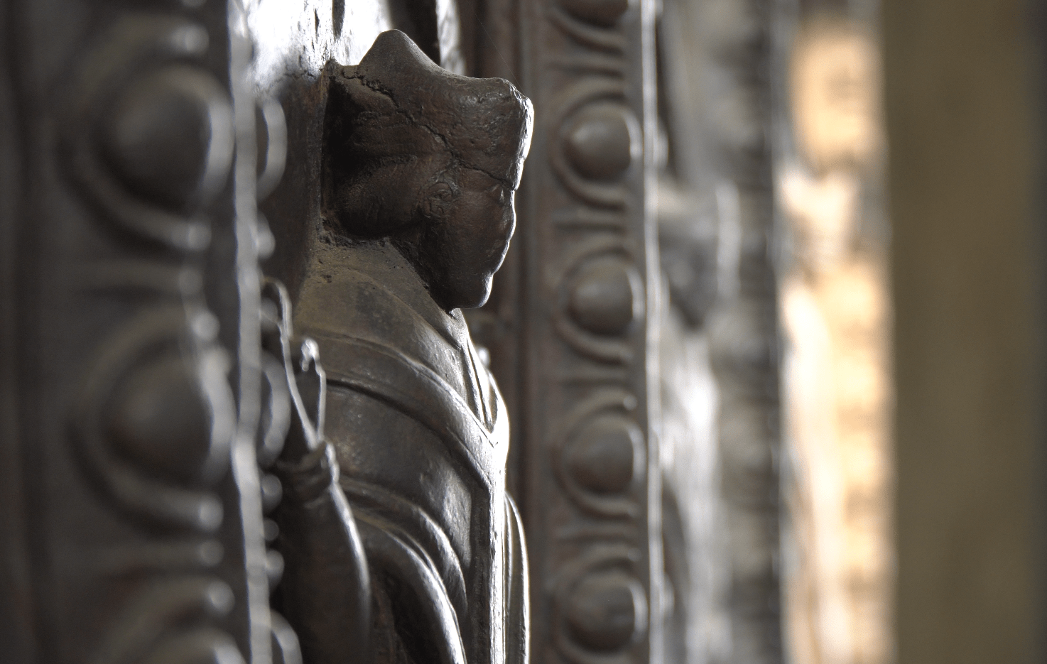 Alta cinque metri e larga tre e mezzo, questa monumentale porta bronzea dell’età medievale è composta da 72 formelle scolpite, che narrano, in parte, episodi della vita di Cristo e, in parte, la struttura gerarchica della Chiesa beneventana. Realizzata tra il 1179 e il 1221 da un anonimo ma geniale scultore noto come il Maestro della Janua Major, l’opera rappresenta una pietra miliare della scultura romanica italiana, capace di opporsi alla stilizzazione bizantina con un linguaggio plastico ricco di volume, ombra e realismo.